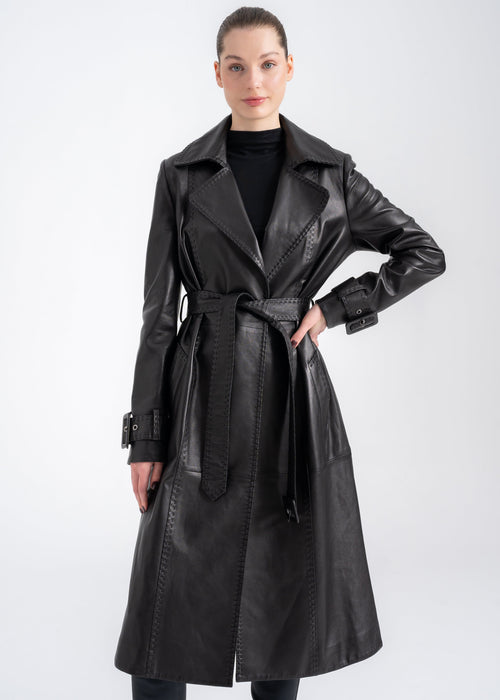 Lebeni Deep Mahogany Lambskin Leather Trench Coat