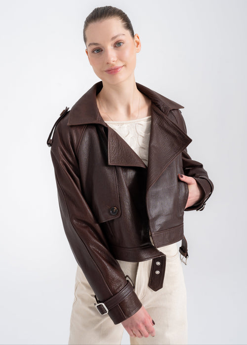 Lebeni Deep Mahogany Lambskin Leather Jacket